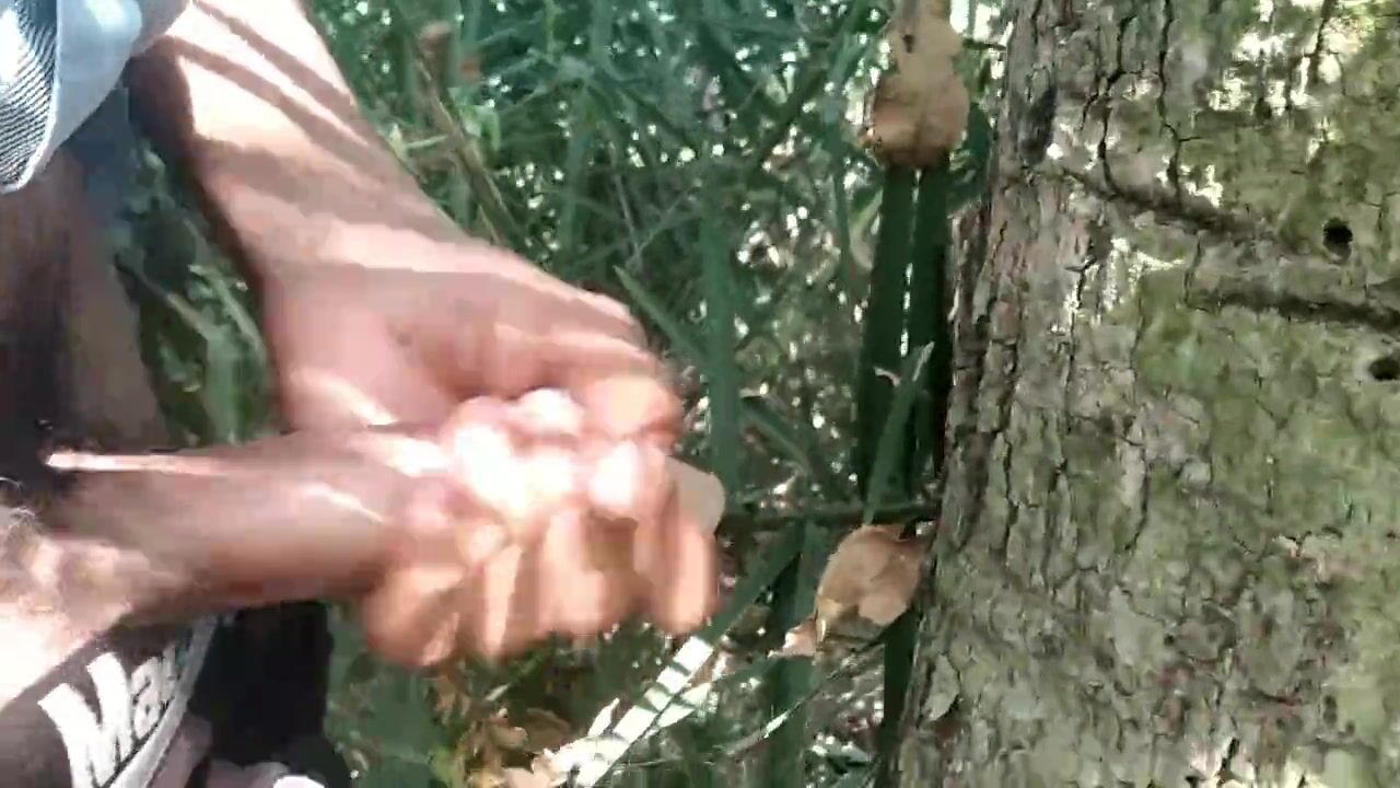. Best cock cumming video handjob,cumshot, Indian boy masturbation in outside and cumshot on tree