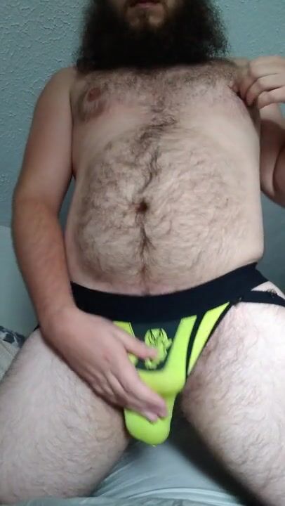 HAIRY CHUB BEAR CUMS THROUGH JOCKSTRAP