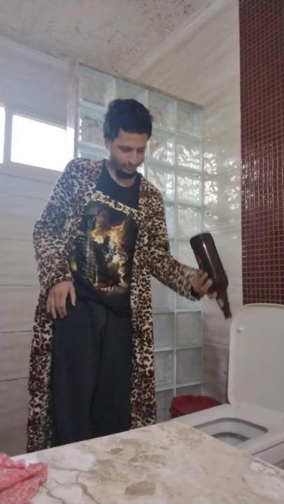 POURING AWAY MY PEE, AND UNCUT COCK PISSING ON THE BORDER OF THE BATHROOM