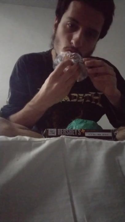CHOCOLATES AND SNACKS TO FILL UP MY BELLY, WANKING WHILE FEEDING MYSELF