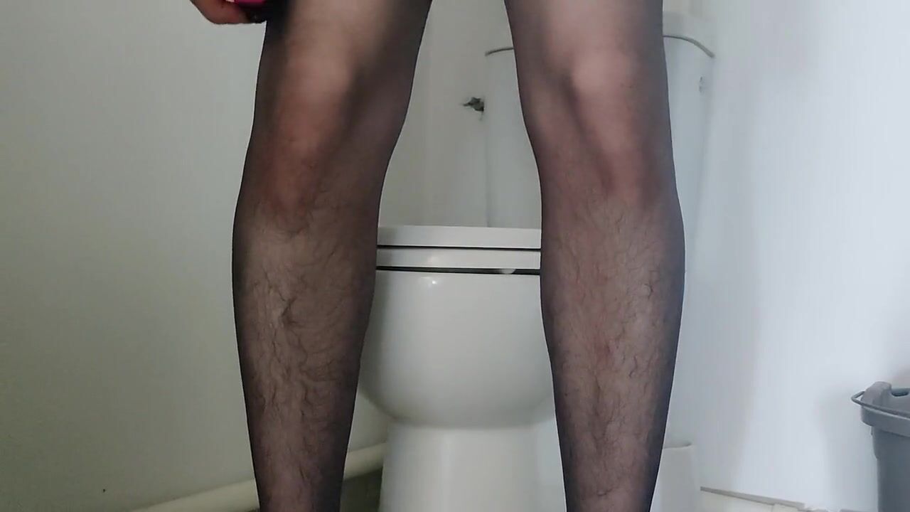 . In beautiful pantyhose and high heel, I am taking care of my pussy in the bathroom with my dildo. So good that I cum at the end