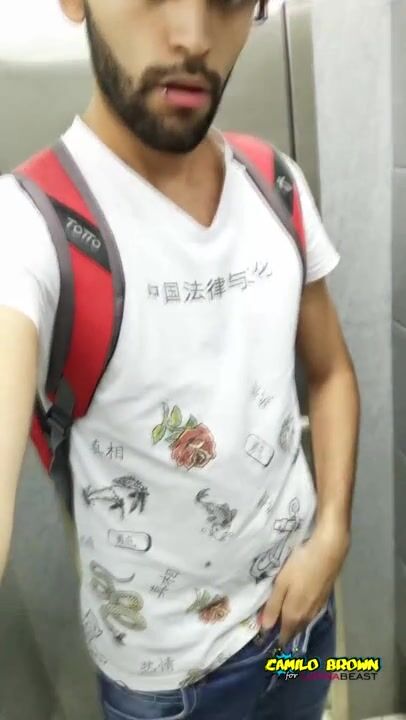 JERKING OFF MY BIG UNCUT COCK AT THE MALL'S PUBLIC BATHROOM - CAMILO BROWN
