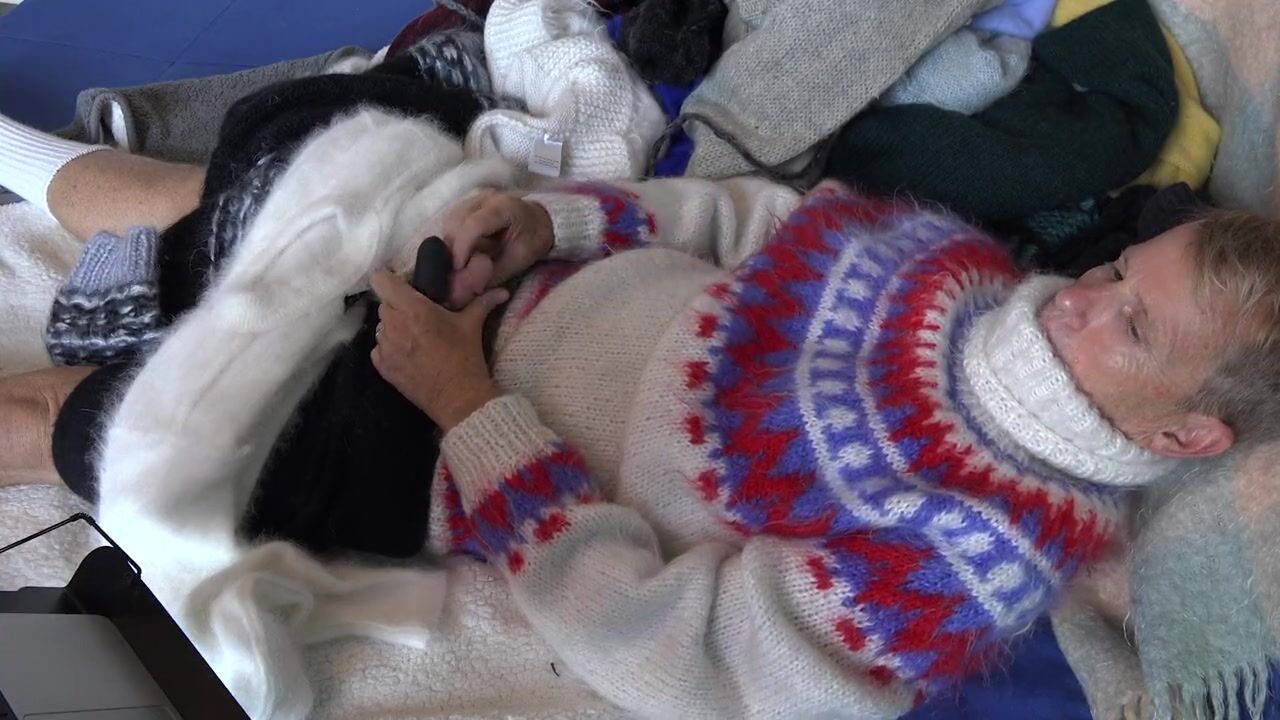 SWEATER FETISH, MOHAIR FETISH, MASTURBATION WITH SOFT WOOLY SWEATERS AND CUM SHOT. VIBRATOR & SOCK PLAY. FUZZY FETISH.