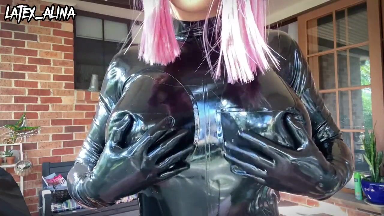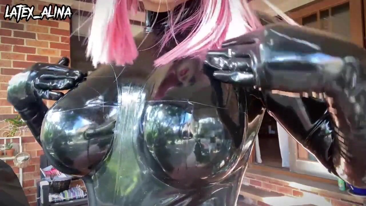 SQUEEZING BIG JUICY LATEX BOOBS