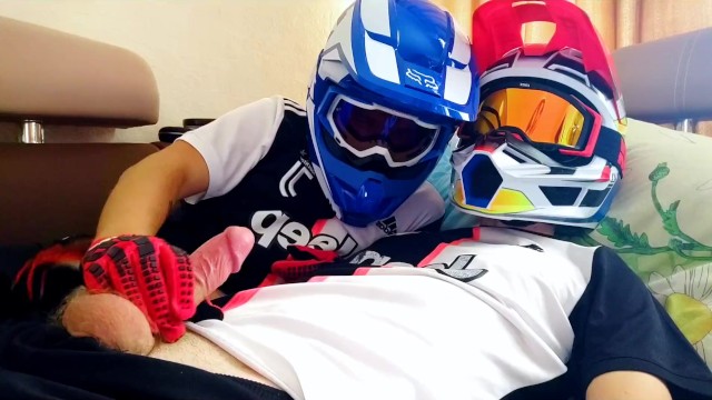 TWO GUYS IN HELMETS JERK OFF AND CUM