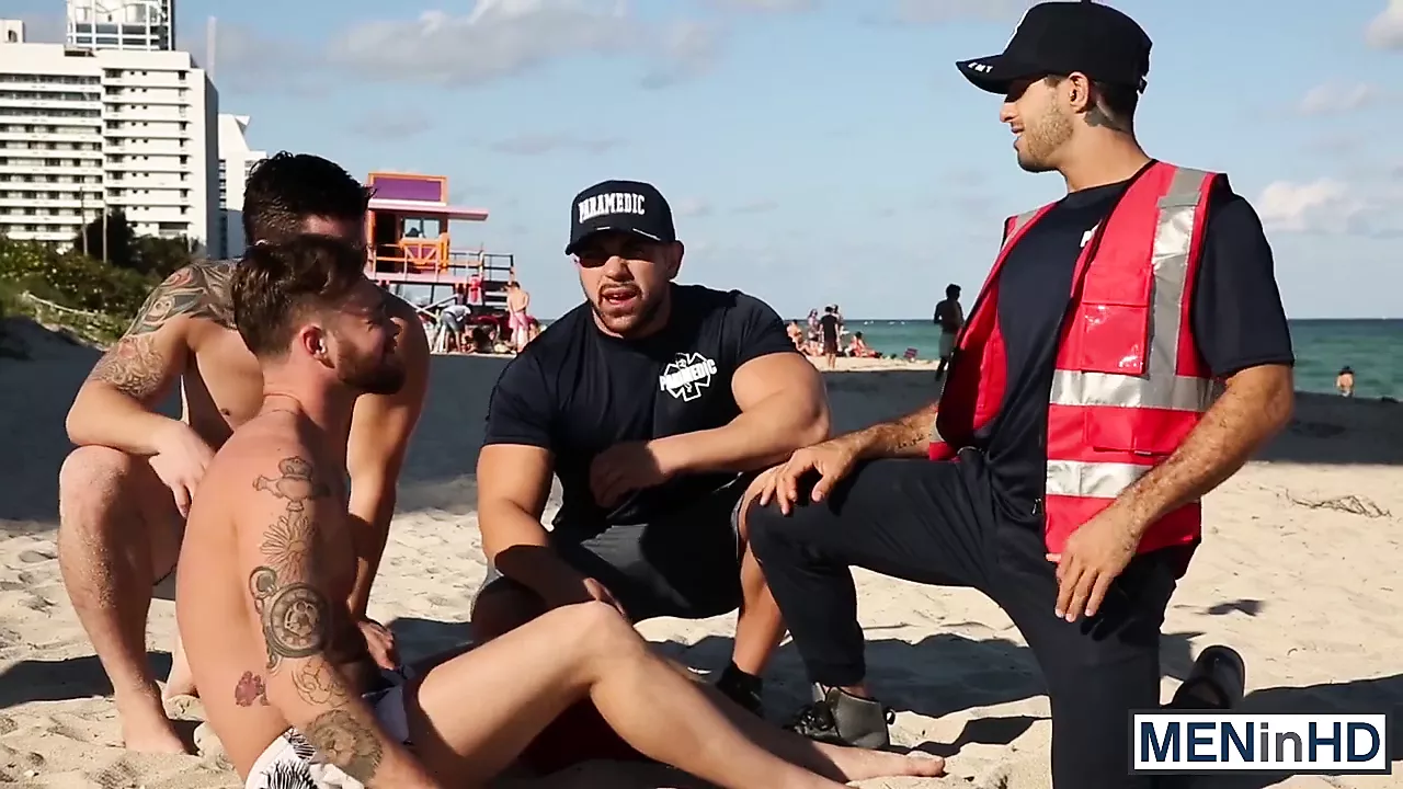 . Max Wilde finds himself in need of care after getting stung by a jellyfish so Allen goes off looking for help. He ends up finding some sexy lifeguards