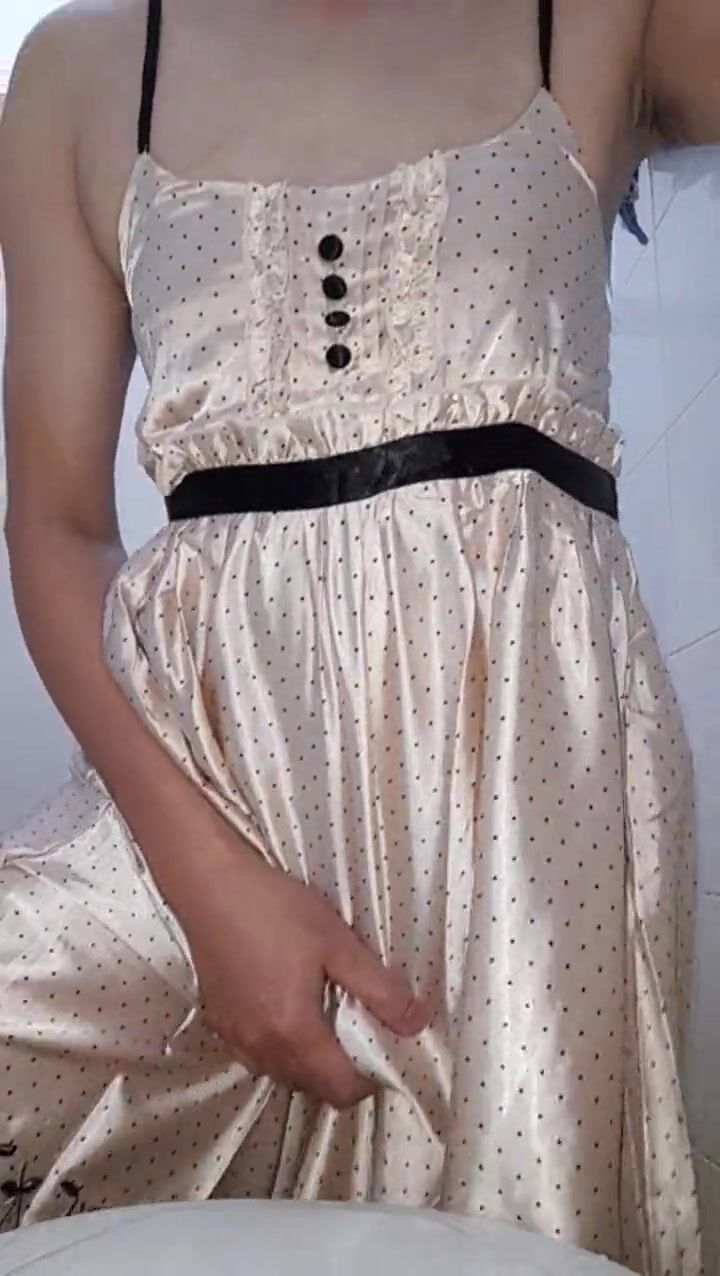 MASTURBATING WITH CUTE SATIN DRESS