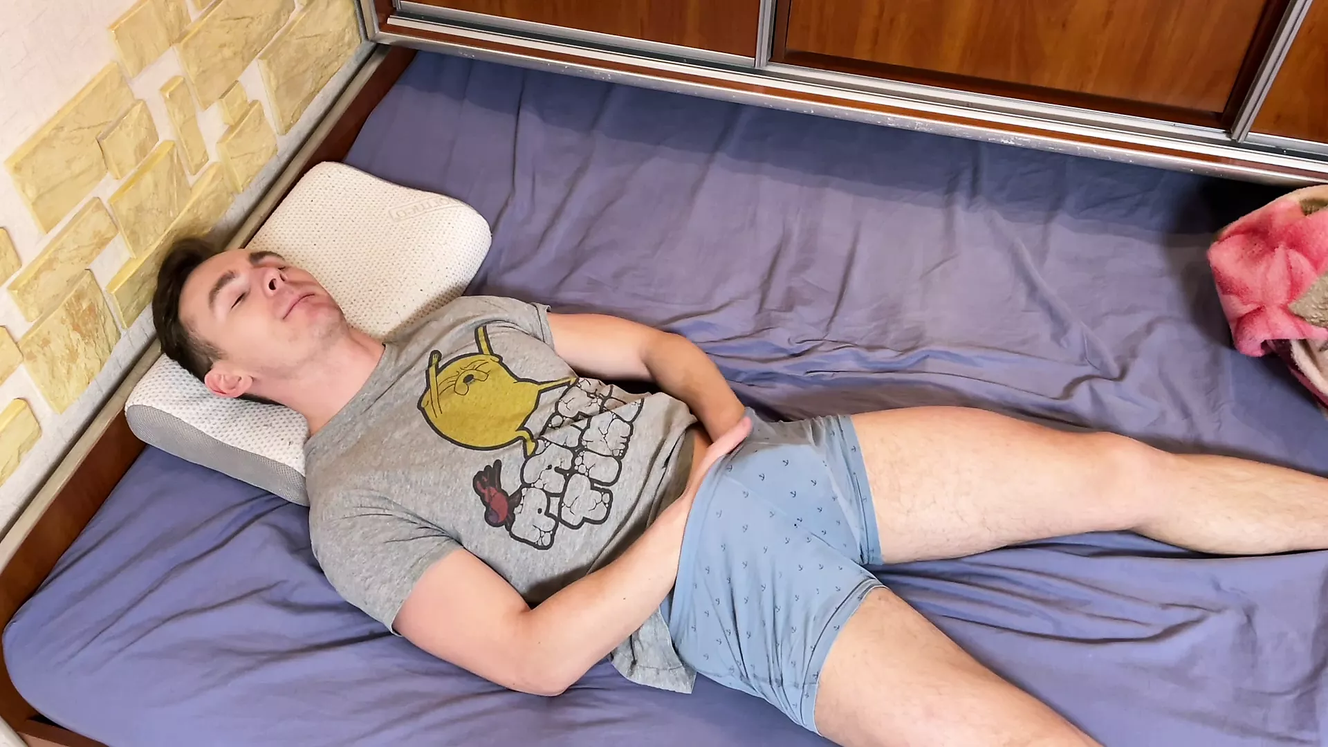 COLLEGE BOY MAKE HOT MOANING CUMSHOT IN THE BED