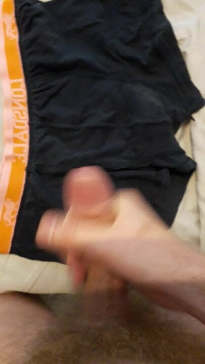 . Wanking onto my black boxer shorts