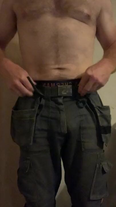 AFTER A HARD DAYS WORK CHANGE INTO STRAIGHT APPRENTICES CUM STAINED BOXERS. IMPRESS WITH BULGE.