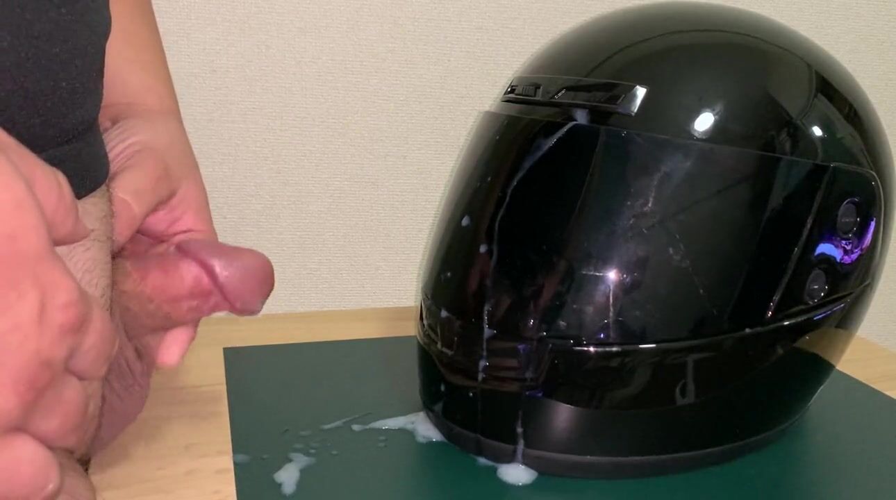 SMALL PENIS CUMMING ON HELMET - MESSY CUMSHOT