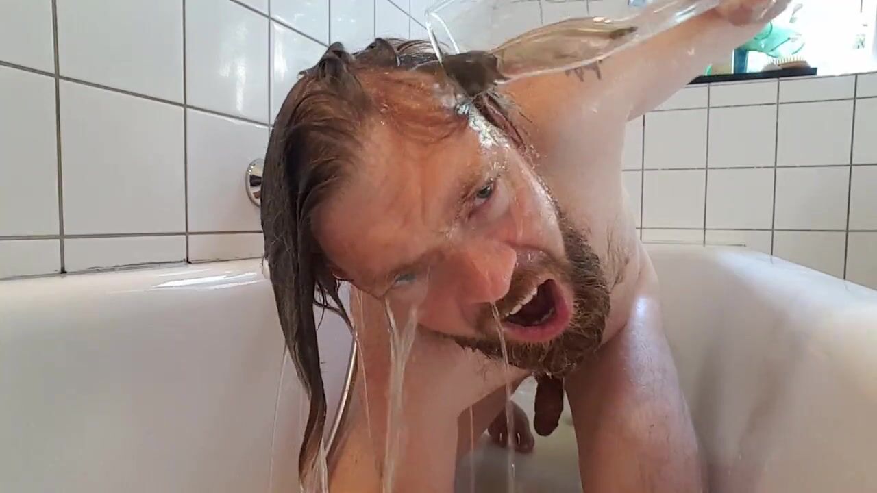 . Having some fun in bathroom playing with my warm, tasty, golden juice. Join me. Let's have wet party!