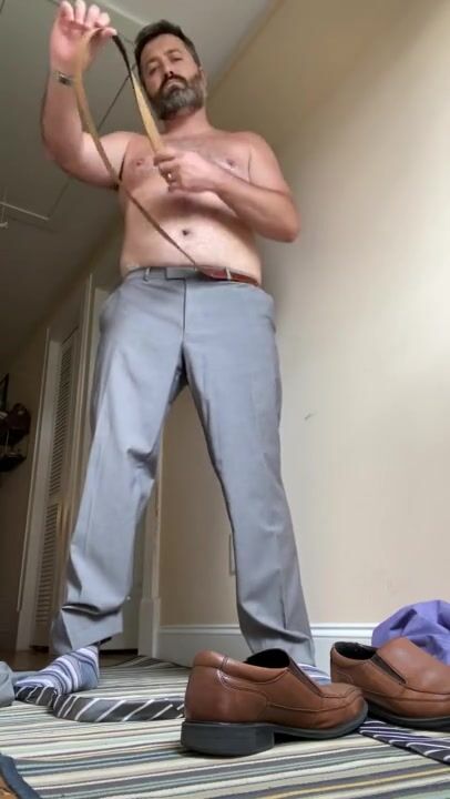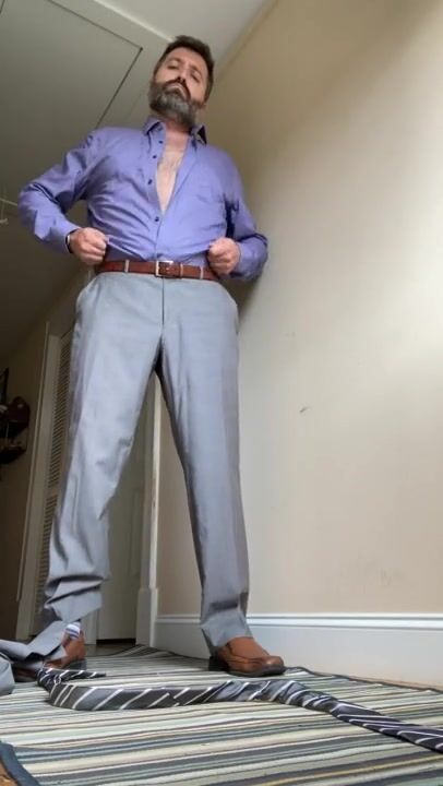 REX MATHEWS STRIPPING FROM SUIT TO NUDE WITH CAGED COCK