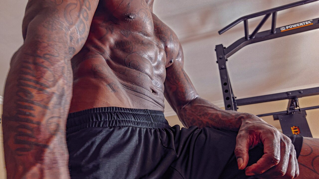 . Tall Dark Chocolate Muscles Tattoos Hairy BBC Hallelujah Johnson Masturbating solo close up big black dick Jerking off Cumshot
