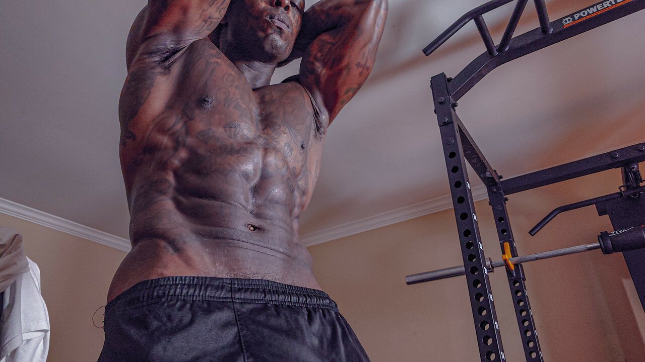 . Tall Dark Chocolate Muscles Tattoos Hairy BBC Hallelujah Johnson Masturbating solo close up big black hairy dick Jacking off and Cumshot Cock Worship video