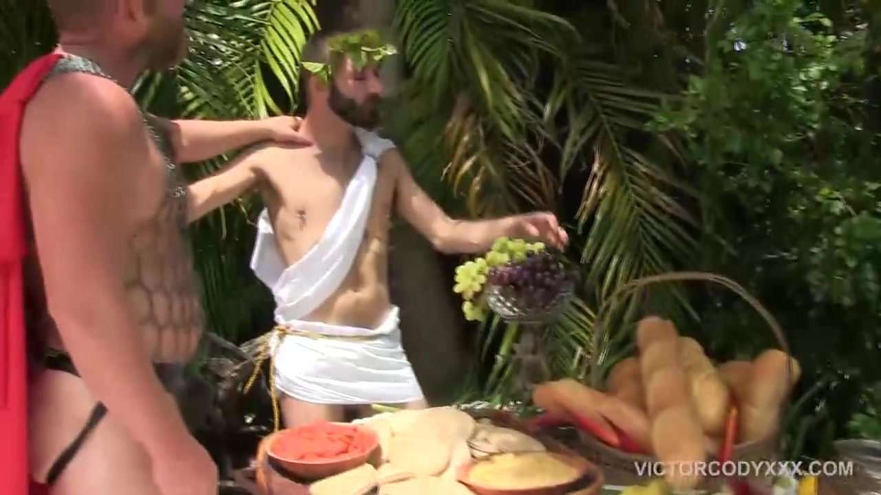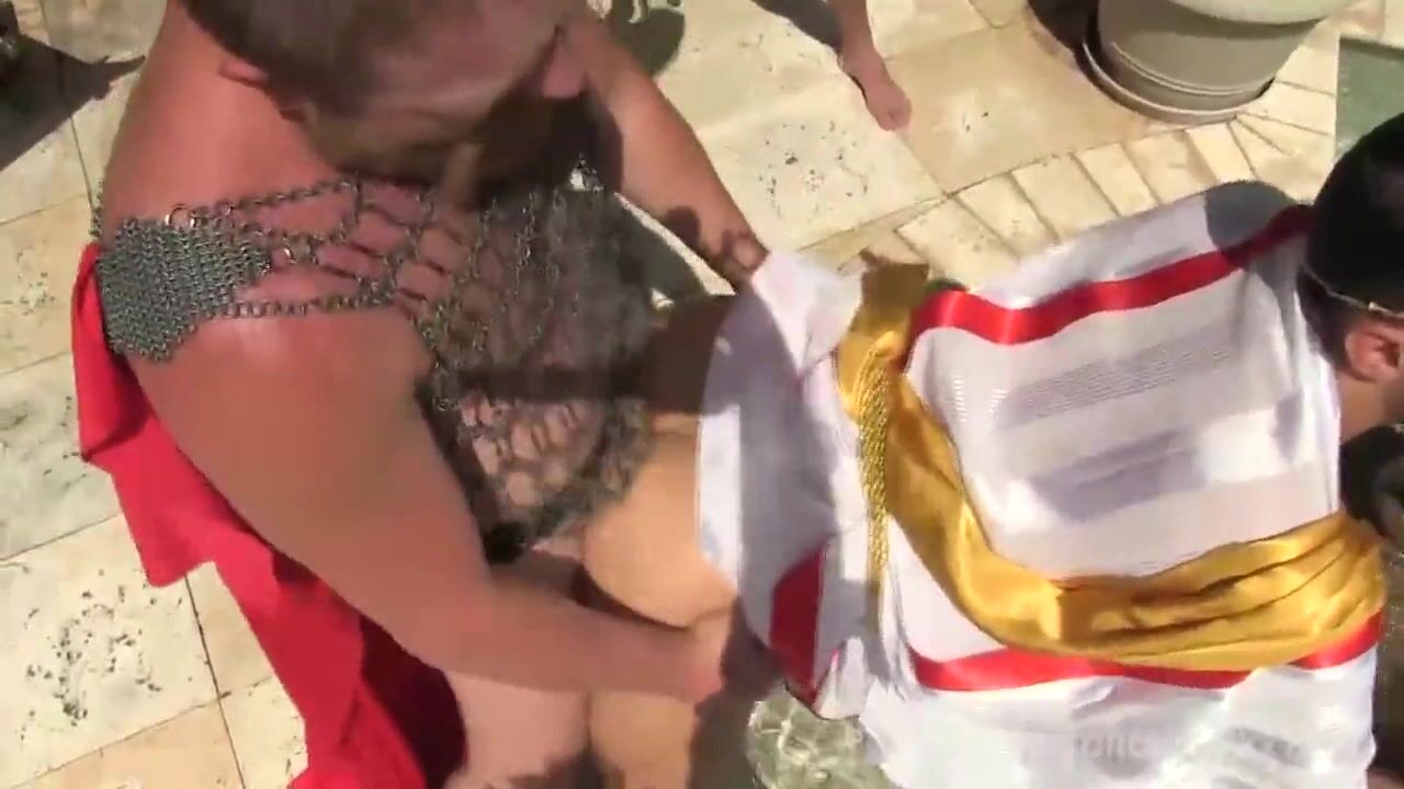 . The Roman Orgy Begins - A roman feast is underway as Cesar Xes celebrates the victories of Maximus, leader of the Roman Armies return from War. Maximus sets out to spill his seed in the Emperor, while Senator Sextus takes hold of a slave boy. He demands the young slave boy to service his cock and lick his well hung balls. Sextus shoves his raw cock into the slave boy's ass, grinding it deep and hard as he pushes it into the helpless and willing slave's asshole. Meanwhile Maximus explores Cesar's ass with his tongue, licking, eating and devouring his hole to loosen and prime it for his victoriously thick cock. The horny crowd both watches and joins in as Maximus takes control of the Emperor's hole. Maximus pounds his massive tool of war mercilessly into Cesar's powerful round ass and barebacks it, until his massive balls erupt and fill his commander's belly full of his victorious seed.