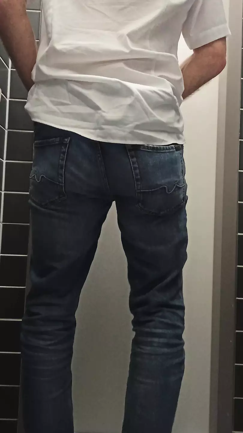. The masturbation of the naked slave in the company toilette part 2. But the cockcage is save!