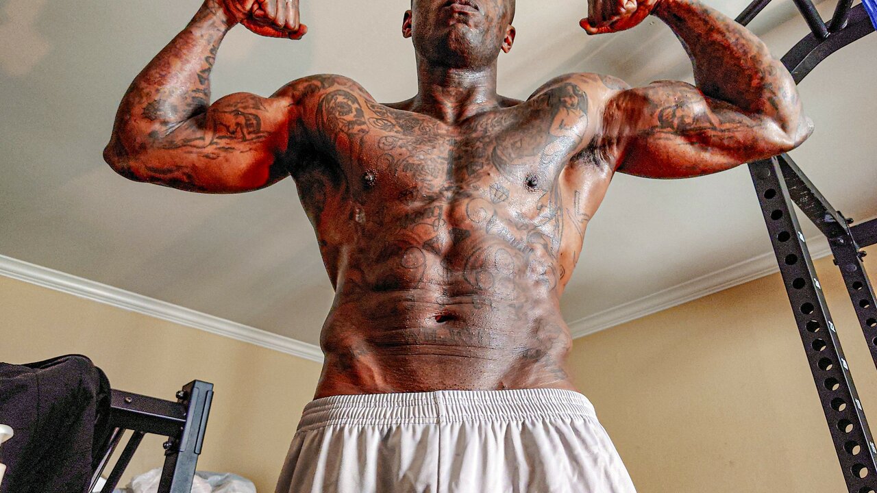 . Tall Dark Chocolate Muscles Tattoos Hairy BBC Hallelujah Johnson Masturbating solo close up big black hairy dick Jacking off