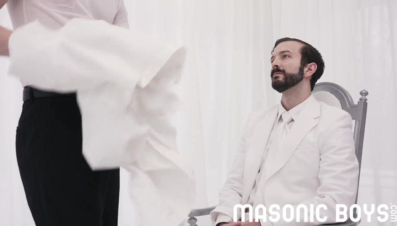 OLDER MAN KISSES AND STROKES YOUNG INITIATE TO SECRET ORDER