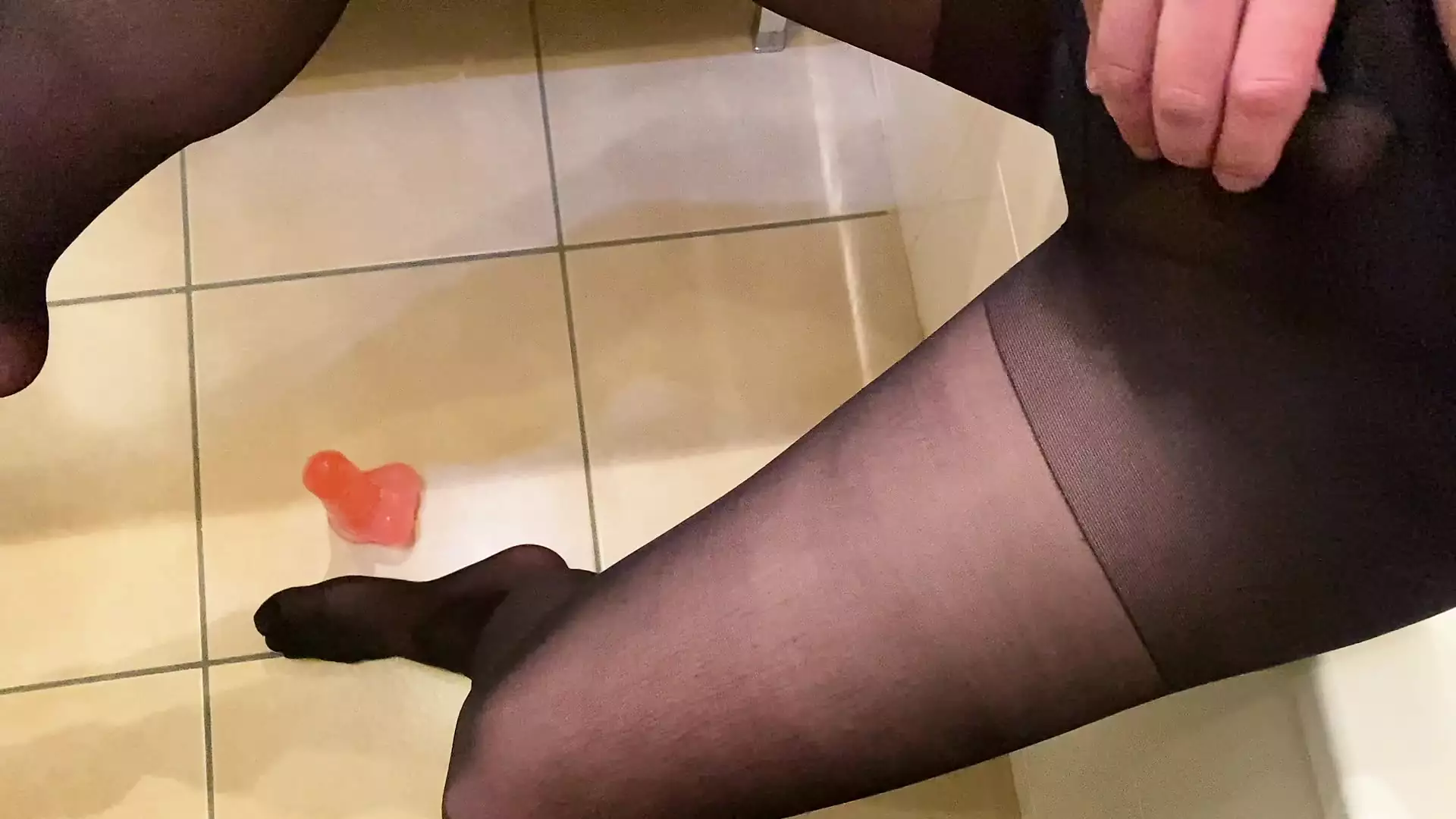 I JERK OFF A COCK WITH MY FEET IN PANTYHOSE AND I CUM ON MY LEG