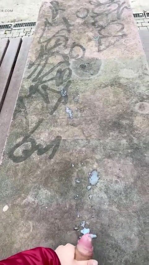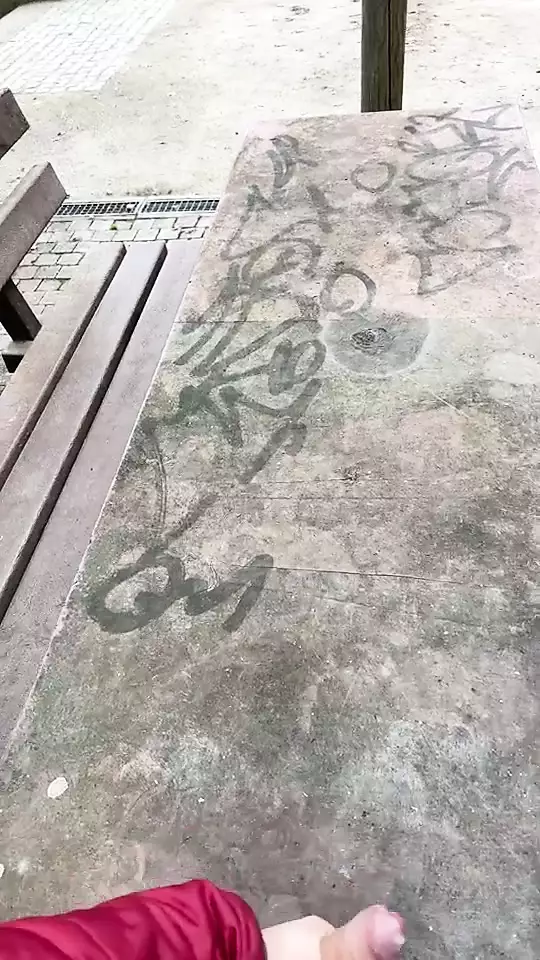 . massive cum all over a table outdoor