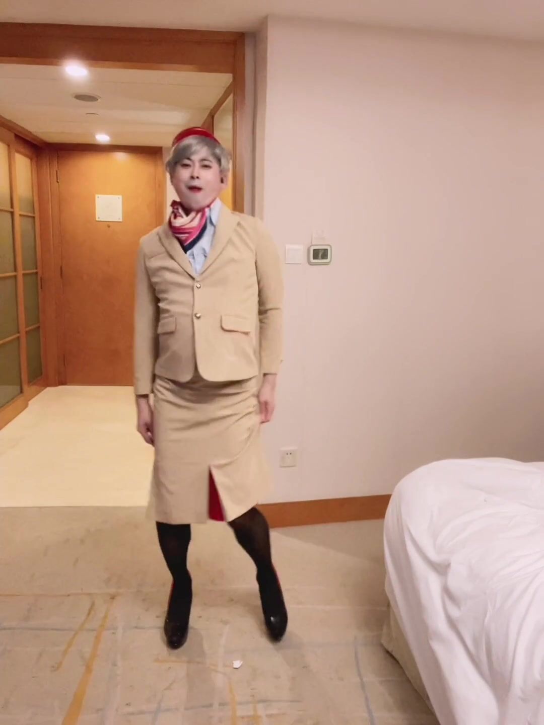 Watch Asian sissy dancing and striping in Emirates cabin crew uniform short gay porn video hd as completely free. Short Gay xxx Asian sissy dancing and striping in Emirates cabin crew uniform video