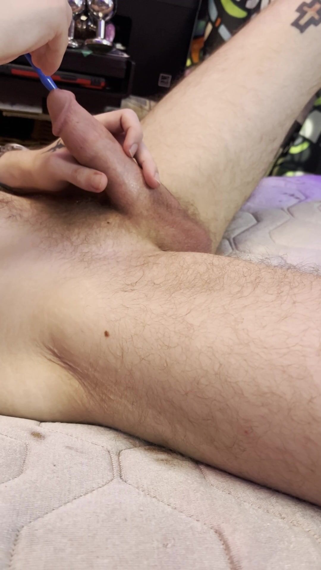 HE SOUNDS HIS BIG COCK AND DRIPS PRECUM