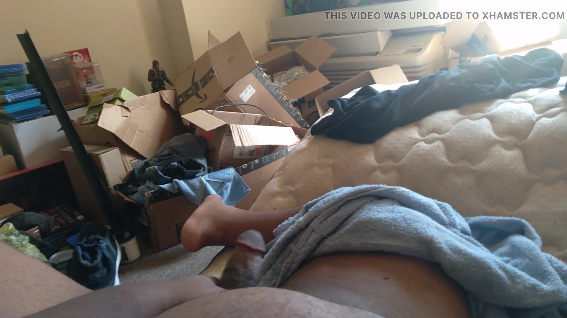 LATIN GUY WITH BIG DICK JACKS OFF WATCHING TRANS PORN IN HIS ROOM