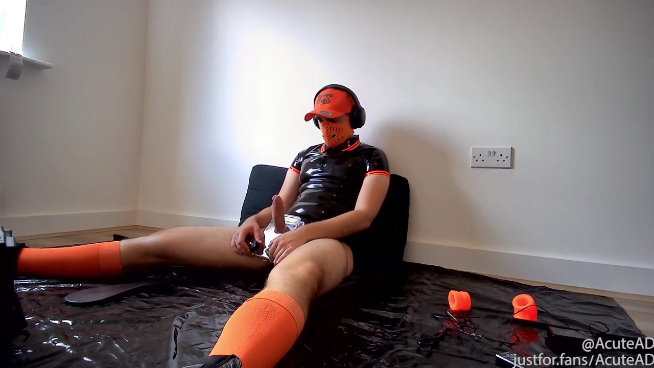 . Got my casual rubbers on to do some CBT. It was a fairly light session but very fun! Full vid on my JFF as always. Pumped my cock, did some electro, ballbusting and ball crushing.