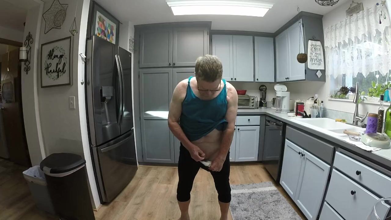 making breakfast and drinking pee