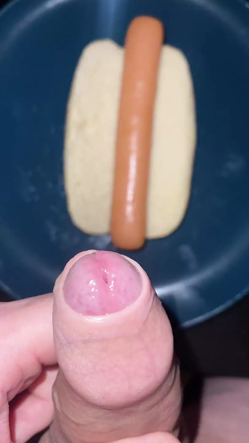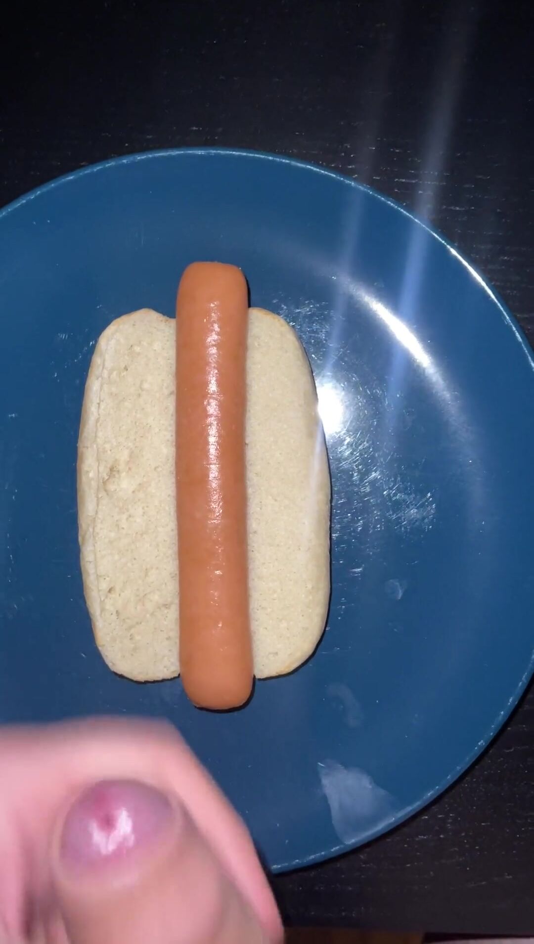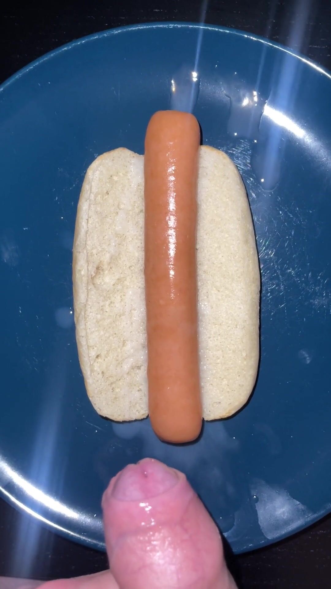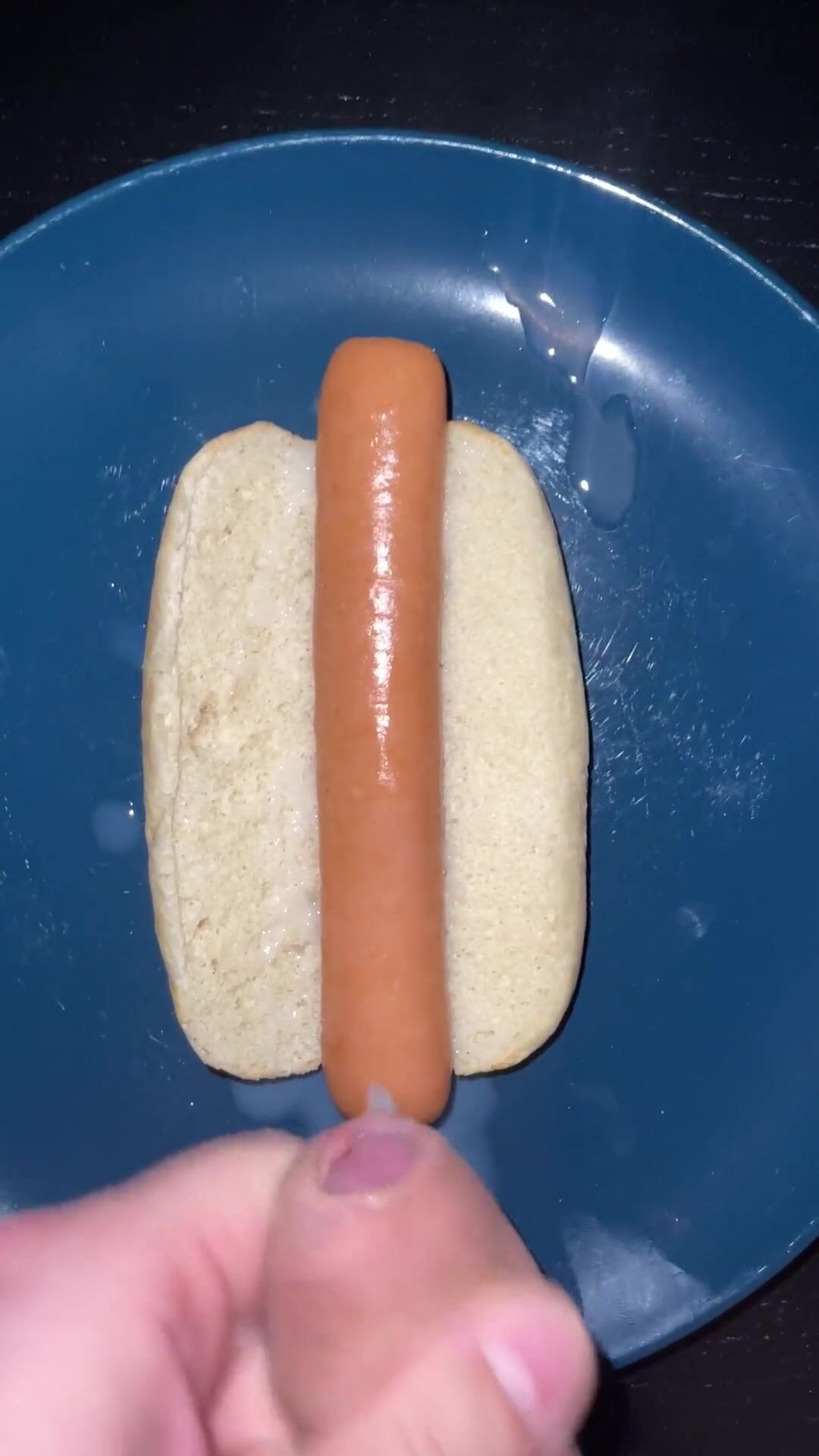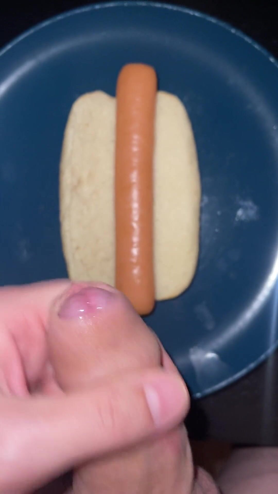 HUGE WATERY CUMSHOT ON HOTDOG