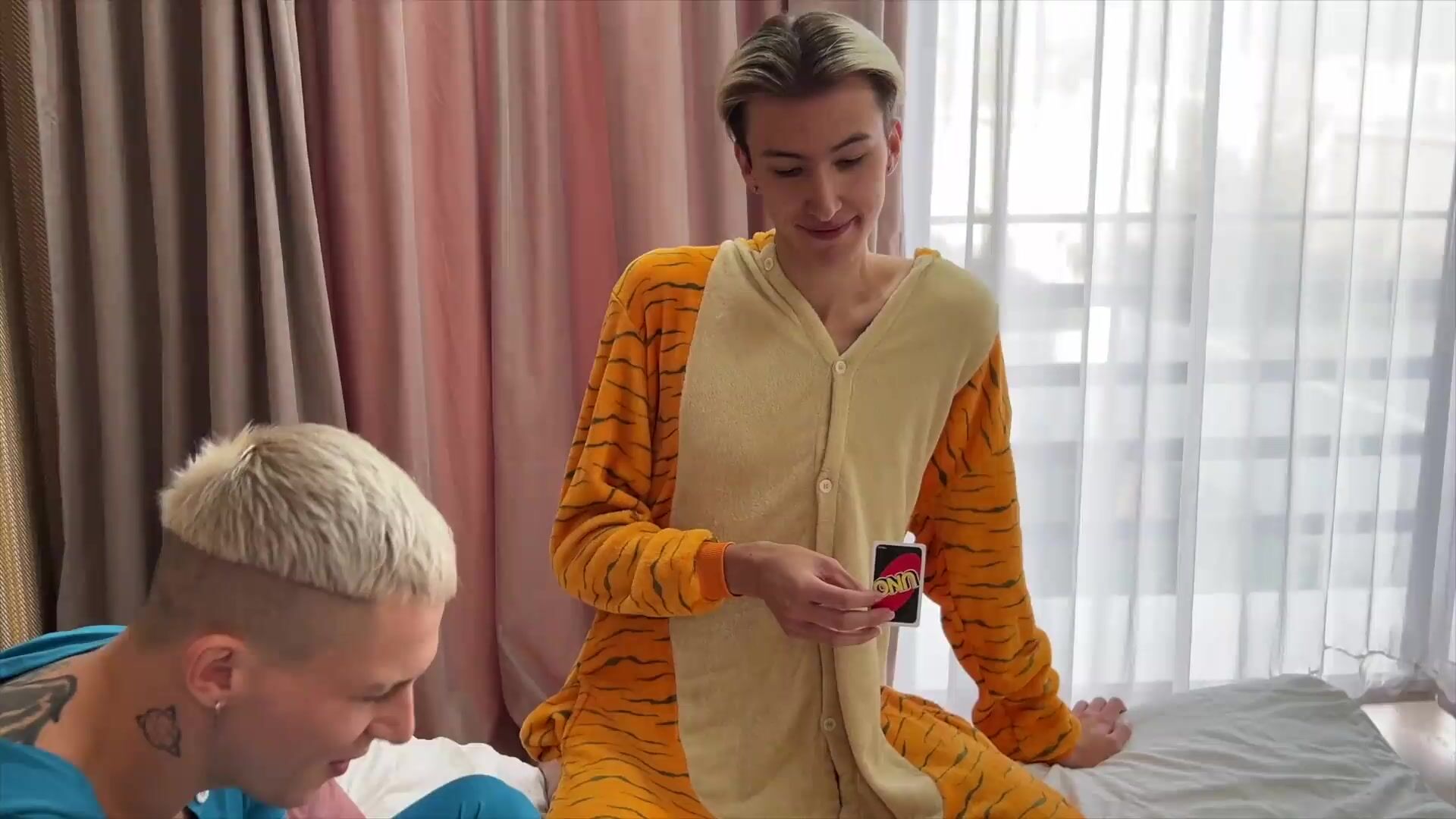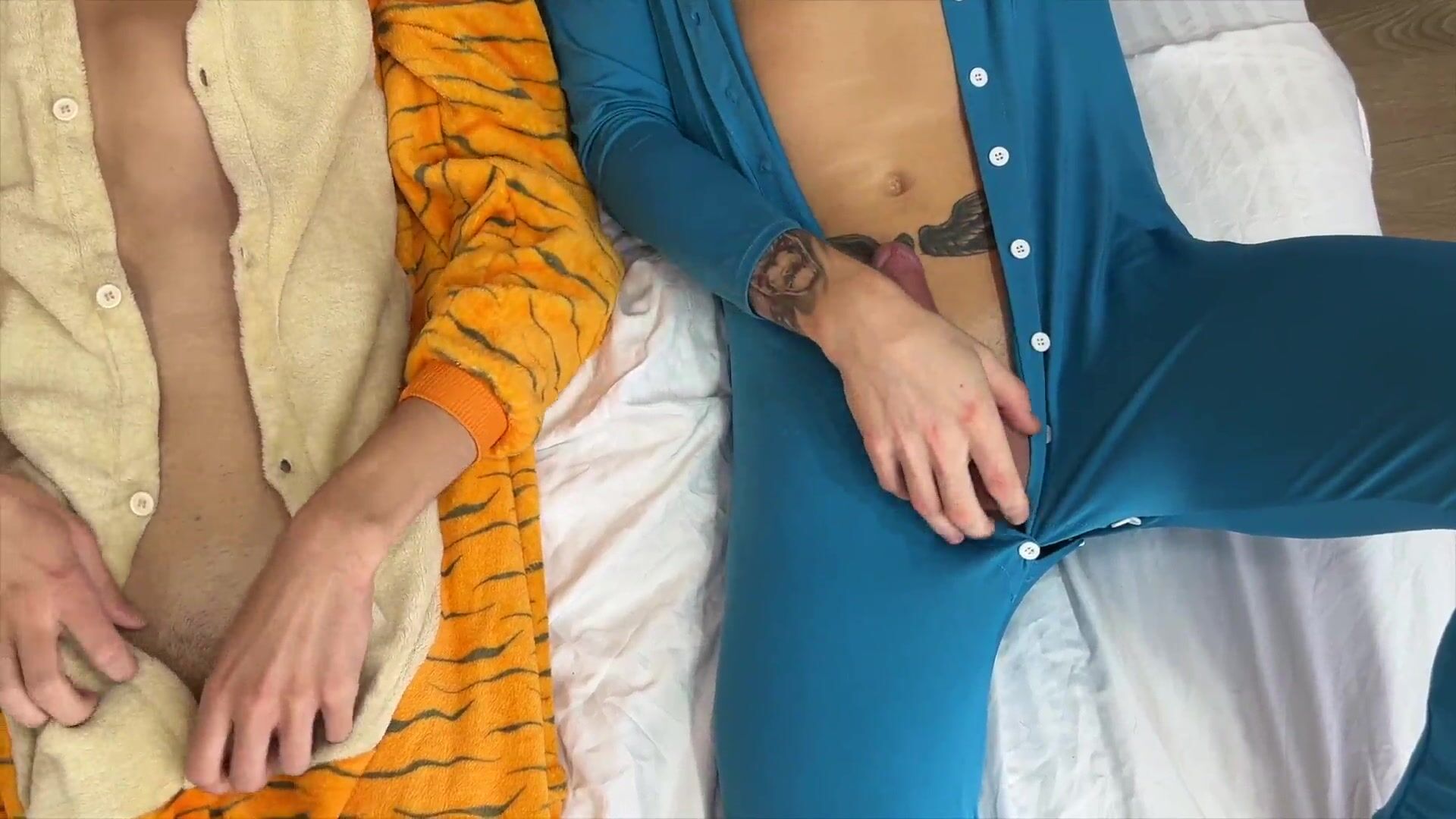 TWO NAUGHTY TWINKS GET DOWN AND DIRTY IN PAJAMA PARTY AND SHARE CUM IN HOT THREESOME