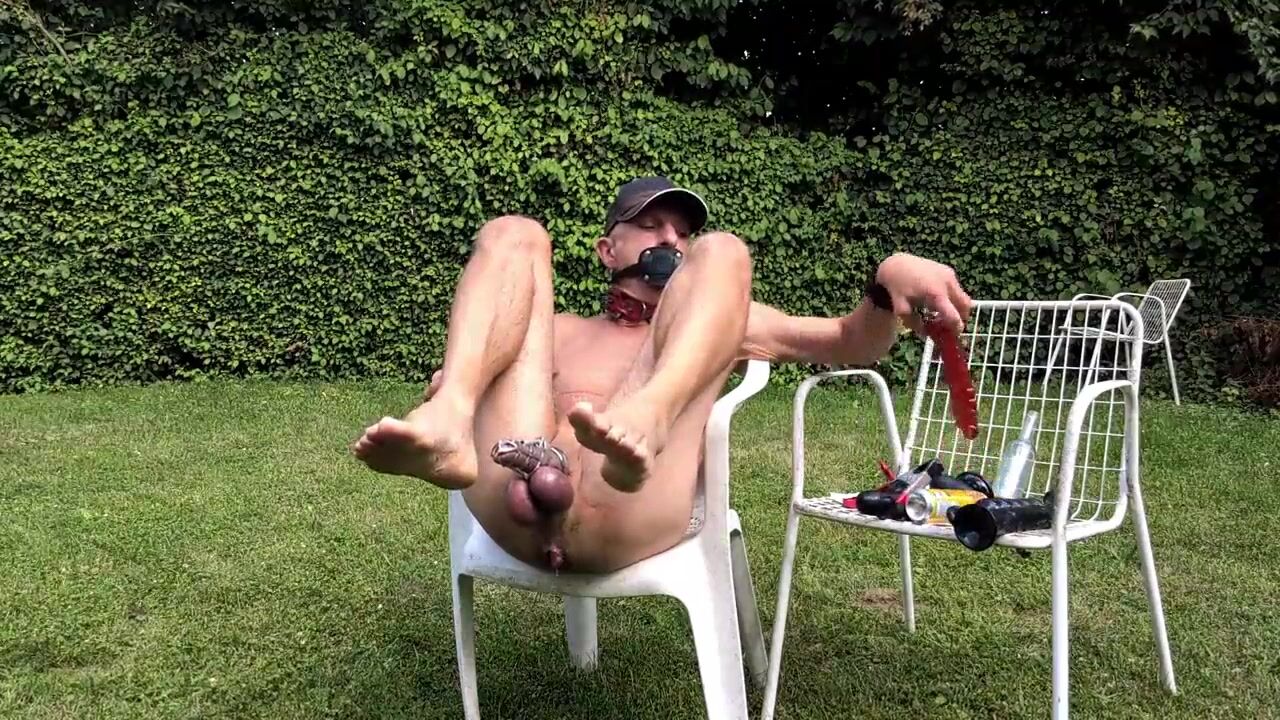 NAKED PATHETIC WHITE SLAVE OUTDOOR IN PENIS CAGE SHOWS PARTY GUESTS WHAT FIT IN GAY ASS, CMNM