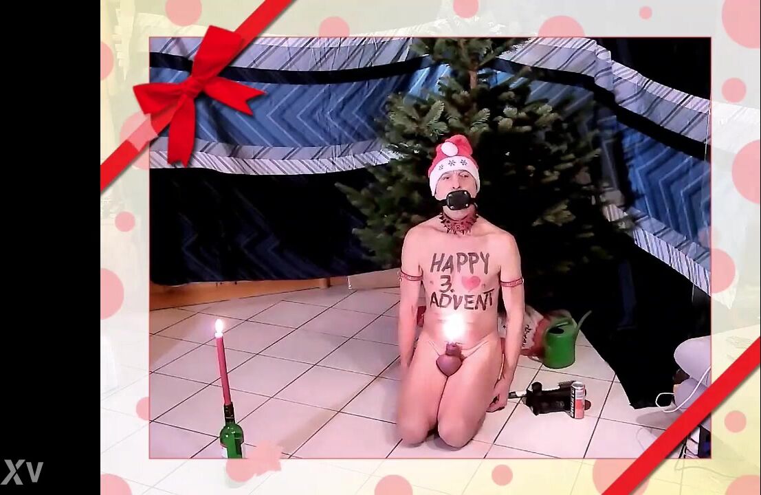 NAKED PATHETIC WHITE SLAVE FOR 3. ADVENT 3 CANDLES IN MY UNCUT DICK, BRUSH IN GAY ASS UNDER THE CHRISTMAS TREE, CMNM