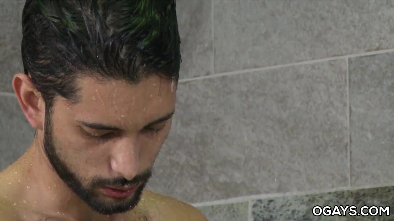 . Jacob Connar is in the shower alone soaping up his body and also playing with his uncut cock. After a little while, Cesar Rossi walks in to join him in the shower...