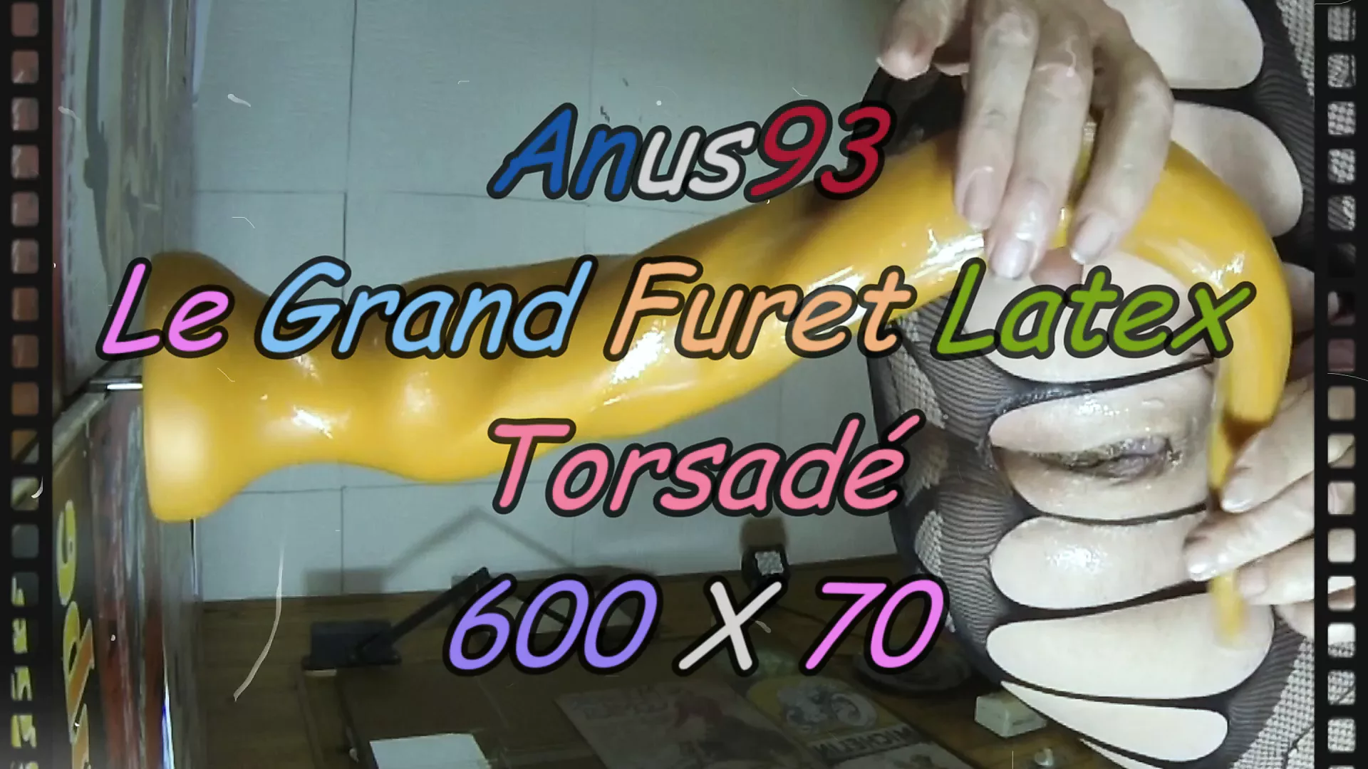 . Grandpa anus is having fun with a large twisted yellow latex ferret its length is 65 centimeters for a maximum of 70 at the bottom at the widest place just before the foot, a very good toy to later le